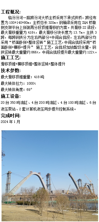 臨汾汾河大橋主橋鋼箱梁滑移頂推、主拱豎轉(zhuǎn)提升工程