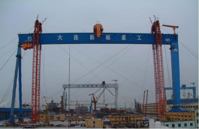 大連新船重工有限公司 600 噸龍門起重機(jī)安裝整體提升工程