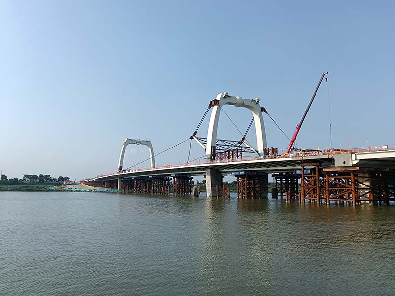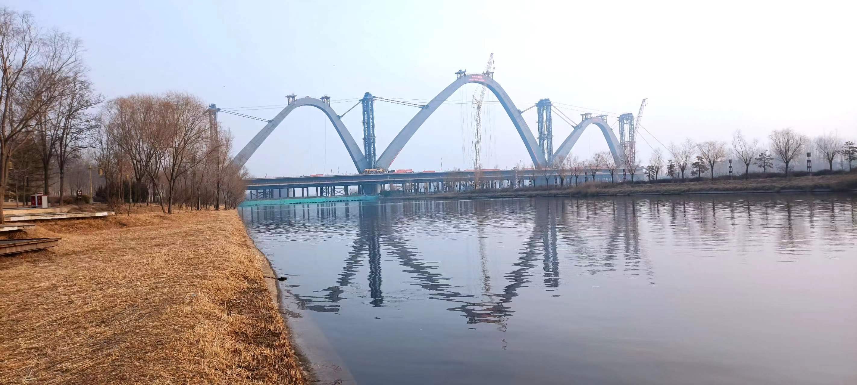 同新工程 2024年1月31日 2024年1月31日,臨汾市河汾一路跨汾河大橋主拱拱肋經(jīng)過(guò)30天滑移頂推、豎轉(zhuǎn)施工、提升施工等工序作業(yè)順利合龍。主橋采用下承式拱橋,跨徑布置為100+140+80m,主橋總長(zhǎng)320m。通過(guò)施工方案優(yōu)化整合,工藝創(chuàng)新,結(jié)構(gòu)模塊化施工建造,現(xiàn)場(chǎng)流水線作業(yè)。鋼箱梁現(xiàn)場(chǎng)安裝采用在ZQ4橋墩側(cè)支架平臺(tái)上拼...