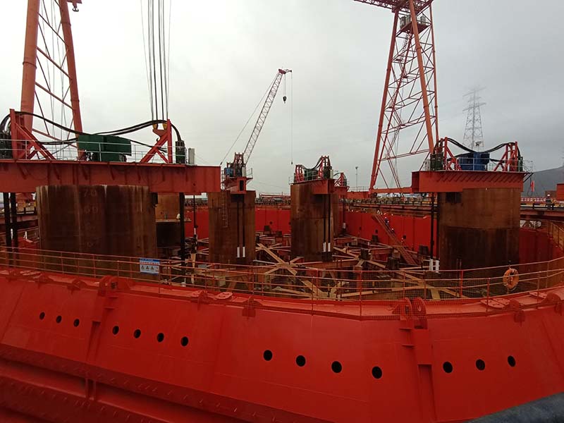 西堠門公鐵兩用大橋5#主塔鋼套箱下放到設(shè)計(jì)標(biāo)高