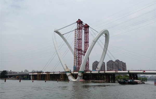 昆山震川大橋大主塔順利豎轉(zhuǎn)到位