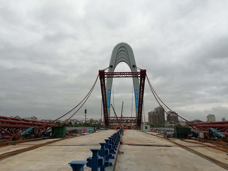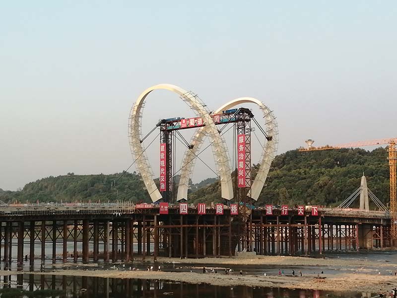 眉山岷江大橋主塔豎轉(zhuǎn)成功就位